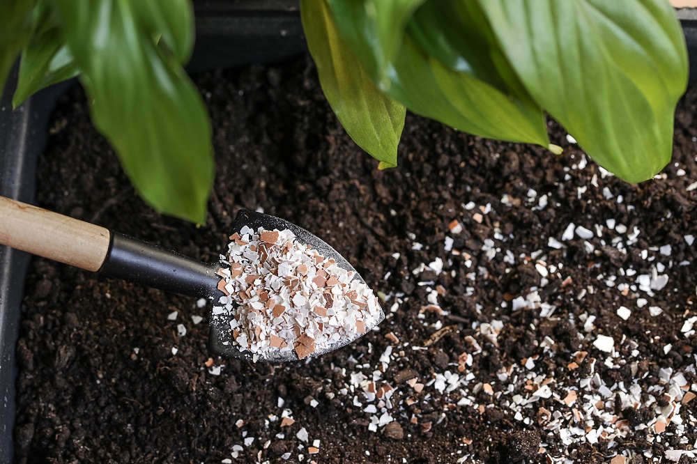 Kurutulup ezilen ve parçalara ayrılan yumurta kabukları toprağı karıştırılır. Bu sayede toprağa kalsiyum desteği sağlanır.